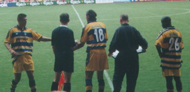 PARMA (3-5-2): Guardalben, Thuram, Torrisi (P Cannavaro 60), F.Cannavaro; Fuser, Lamouchi, Baggio (Maini 81), Appiah (Montano 81), Conceiçao (Benarrivo 56); Di Vaio, Milosevic (Bonazzoli 81). (Unused subs: Micillo, De Lucia, D’Imporzano, D’Alterio, Saccani, Strada). Coach: Malesani