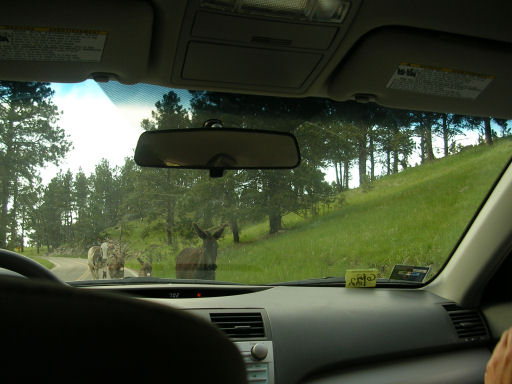 Next, we drove through Custer State Park, firstly going down to Hot Springs for late lunch in Dairy Queen, before returning to the Park and the Wildlife Loop. It was great! Buffalo all over the place - herds of them! And lots of deer and elk, as well as burros and marmots. What I found the most appealing though, were the prairie dogs, which popped up out of there holes all over the place; so cute! I vowed to get one (even if only a stuffed one!).