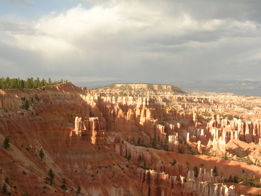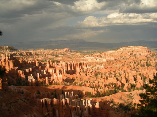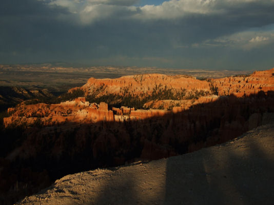 We drove past the entrance to Bryce Canyon NP and continued onto Tropic and our overnight cabin at the Stone Canyon Inn. We were greeted by the innkeepers and shown to our cabin (number 6 - but also number 7??), which was large (sitting room, kitchen, 2 bedrooms) and comfortable, apart from the beds!! We unpacked our stuff and then decided to head for the park! The skies looked black and we really hoped that we wouldn't get a thunderstorm like last time. We were lucky!