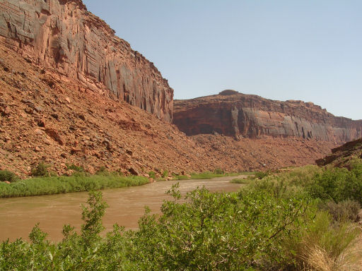 Heading back towards Moab, beside the Colorado river, there was a big bang and I discovered that the orange juice had exploded, beneath my feet!! The whole car reeked of oranges and we cleaned up as best we could, dumping everything in a skip at a rest stop at the end of the road!