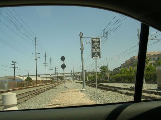 We stopped at Solana Beach, and went into the Longs to see if we could find any duct tape to fix up my case. Also a strap. We found a strap, but the tape we bought was puny. The road was lovely, but we weren't making very good time and so we popped back onto I-5 and turned off again at San Juan Capistrano and had lunch from El Pollo Loco in Dana Point.