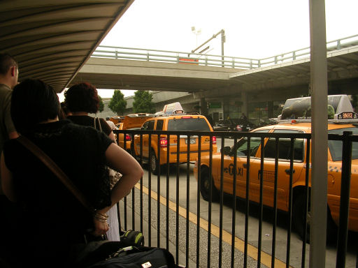 JFK is not as nice as I had expected it to be; certainly Terminal 7 isn't. It was rather scruffy. We had to line up for about an hour to go through security. This is always a bummer after a long flight, when you just want to get outside and get on with your holiday. I wish they would give you somewhere to sit down and a cup of tea or something! But, once through security (more mug shots and fingerprinting), we were allowed into the country and we didn't have to wait long to pick up our luggage, quickly through customs and outside for a smoke! It sure was hot!! Today, in New York City, was around 93 degrees F, a lot warmer than we'd been used to!