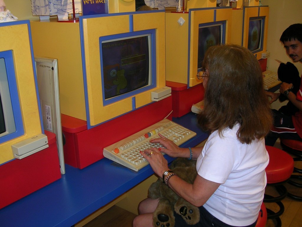 Paul and I built bears, while the hub took pictures (most of which are still on the laptop). I build Picallili Charles and Paul built Smarlie (?). What fun! We stuffed them and warmed their hearts (though I fear I inserted PC's bent). We fluffed them, we registered their births on computer (with a special tag so that they would never get lost) and dressed them. There was nobody else in there, apart from a large man, wearing a cowboy hat, who was building a horse and a pig and buying them all sorts of clothes, including Y-fronts. He needed a little persuading (from hub) to do a proper job of fluffing under the shower, but he enjoyed himself, no doubt!!