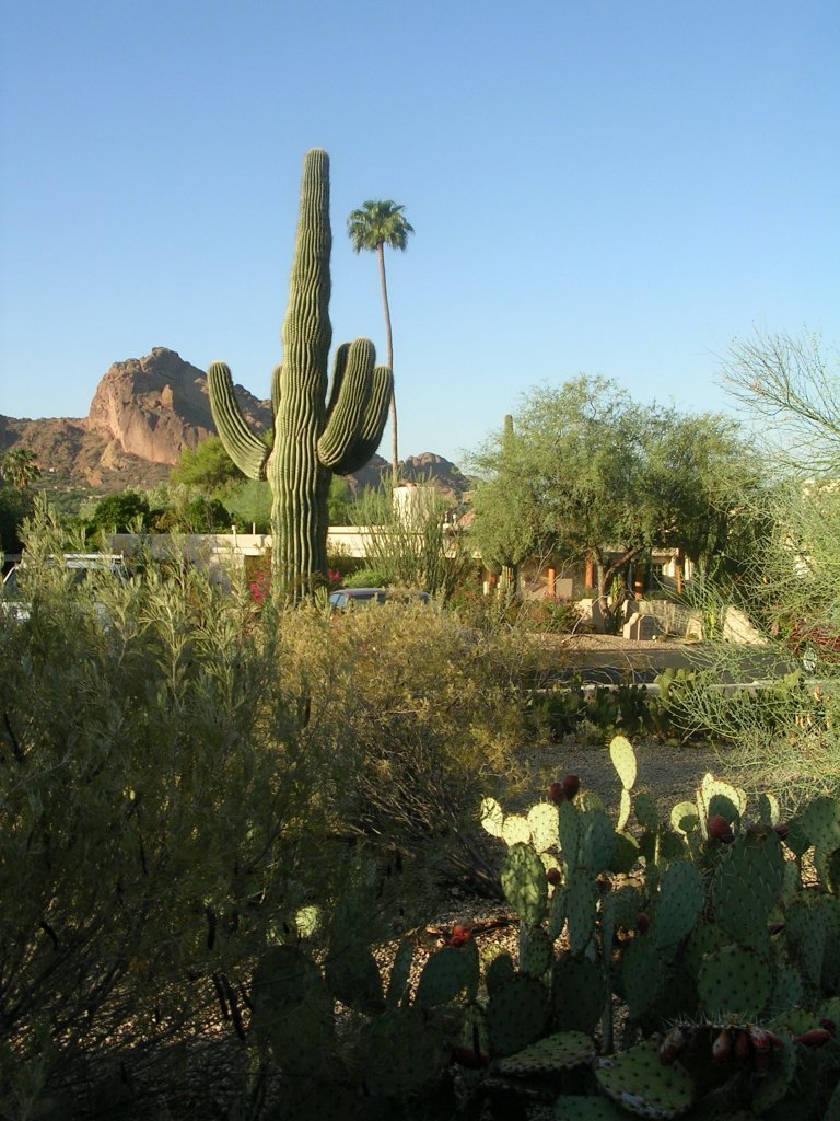 Never in my (never to be voluntarily admitted to how) long life had I ever woken to such beauty on my birthday! I was awake at 4:00 and again at 6:00 and I sat outside on the patio. There were strange birds twittering - maybe whipperwhills (sp?) and, later, what I at first had thought to be a dragon-fly, turned out to be a hummingbird! Fancy that! One of the cacti was in flower and all was simply wonderful. I was still a little jet-lagged though.