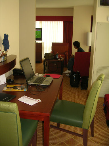 Because it was in internal flight, we had no immigration or customs to go through - so it was just a case of picking up our luggage from the carousel; this didn't take long. Then we went in search of the Go Airport Express, boarded the bus and were easily and quickly transferred into Chicago, at the door of our hotel, the Marriott Residence Inn, River North. We were greeted by Will, who took our bags up to our room! There was a strange setup here. You had to get into a (large) elevator to take you to the main reception floor. On this floor were both the reception desk for the Residence Inn and for the Springhill Suites (slightly cheaper) and, from here, you had to get another lift to your room floor. Anyway, again we were on the 15th floor - this time, room 1502. It was an exceptionally nice room, which we were delighted with. You entered and there was a kitchen, turn the corner and there was a table for eating or laptopping - then you turned another corner and there was the bathroom and the large area with very comfy king bed and sleeper sofa. Everything was brand new and there were windows lining all the walls. The windows were full length, so you really did know you were on the 15th floor - eek, what a drop!