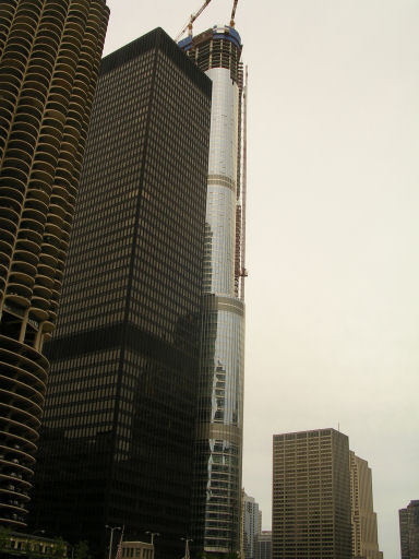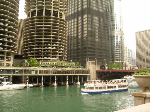 We went back to camp and down to supper. It wasn't very good tonight - tacos or something other that was black and crispy! Paul went out for a walk (aka McDonalds) and Terry and I had showers and I wrote postcards. Probably we should've checked out the fireworks on Navy Pier tonight (and every Wednesday night), but we were way too tired. But we did go for a short walk beside the river, which was gorgeous with all the lights twinkling. The Weather Channel told us there would be severe storms in Chicago tomorrow, which was rather a bummer.