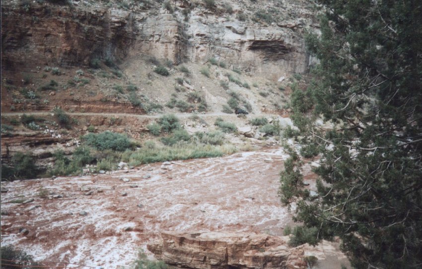 We entered the Tonto National Forest. Endless miles of forested mountains, with hardly another car in sight! Then, we were into the Fort Apache Indian Reservation and the Salt River Canyon. It was magnificent! We stopped down by the river, where indians were selling jewellery on their stalls (I didn't buy any - this time!), and we wanted to use the toilet - but the toilets were holes! Not holes like the holes you might get in France, but holes that went down for eternity! I for one, chickened out of that!!