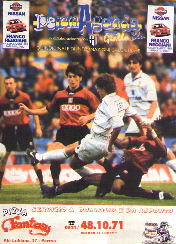the folk in the dear seats. For anyone who wondered what a Parma programme looked like though, here is a half-scale scan of the "Versus Roma, 13.12.98" one (kindly sent to me by Andy Gardener).